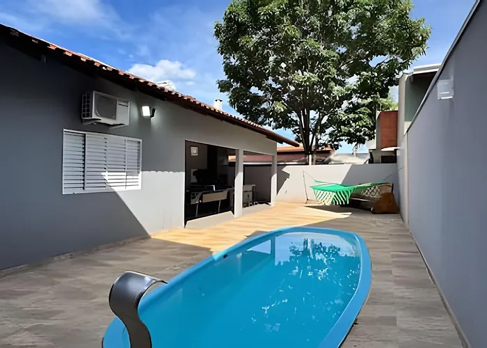 Projeto Jiboiaから徒歩で5分の場所に位置するCasa Exclusiva Com Piscina E Sinuca Em Bonito ボニートには、リラックスできるプールがあります。